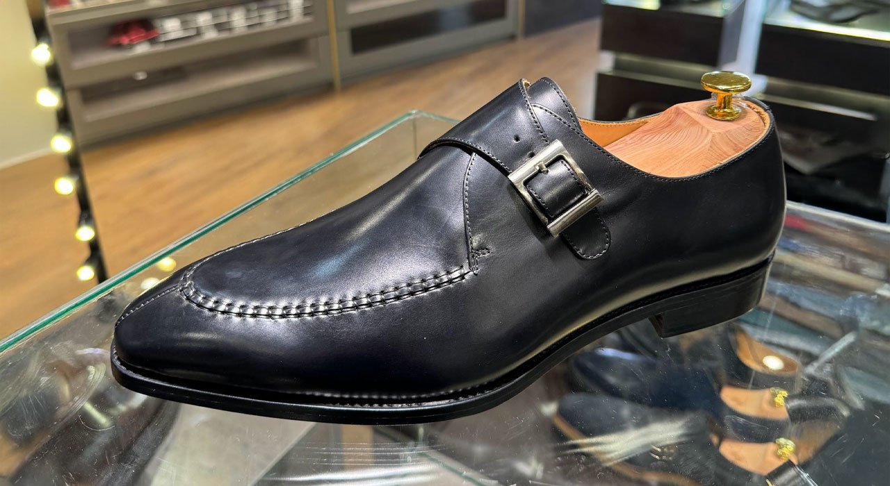 Boucle en acier, cuir de veau, couleur noire mettant en avant la classe du Gentleman
